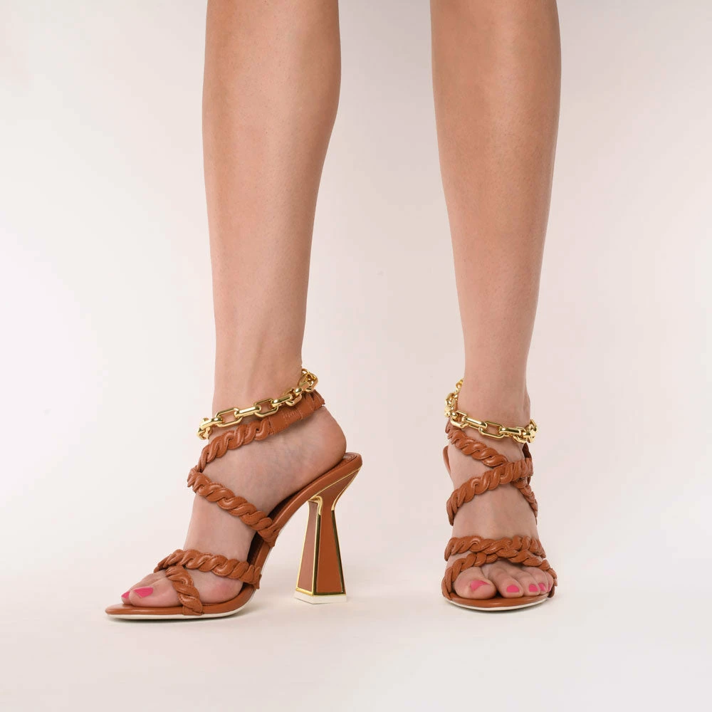 Make deciding what to wear easy in just one simple step: the Avril heel. Cut from leather in a braided-style effect, pair this caramel flared heel with just about anything and you’re good to go. Take us with you?