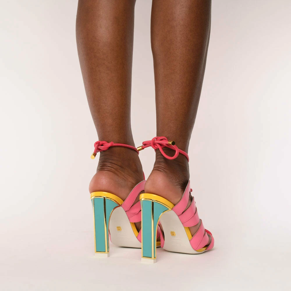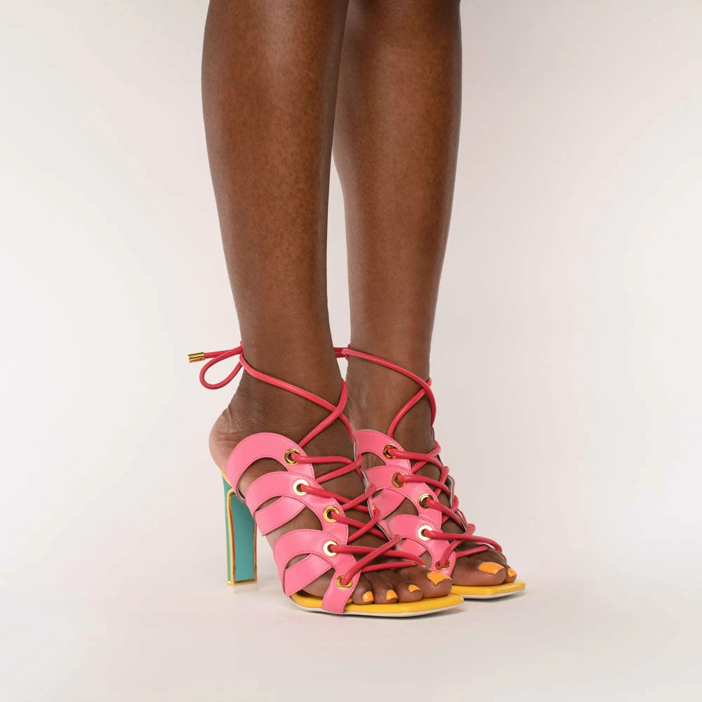 Lace up, let’s get wild. The Celia is crafted from full-grain Nappa leather in multi-coloured hues, with a straight heel and lace-up detailing.