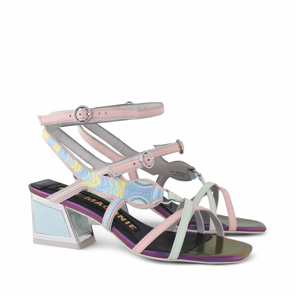 For those in-between moments of the day, the Dylana takes you from desk to dawn. A mid-heel, they feature our SS20 lizard motif and pastel leather with a multi-strap design. Team yours with a T-shirt dress by night and let’s see what you get up to.