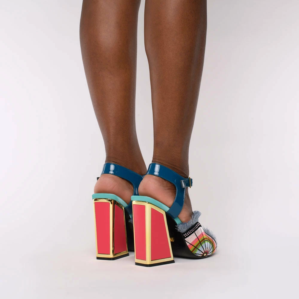 Reimagined for SS’22 our iconic Ariel style feels bolder and more expressive than ever. This heel crafted from leather in bright, mixed hues features an embroidered fan-style detail to the sides, with our signature framed heel. They’re ready when you are.