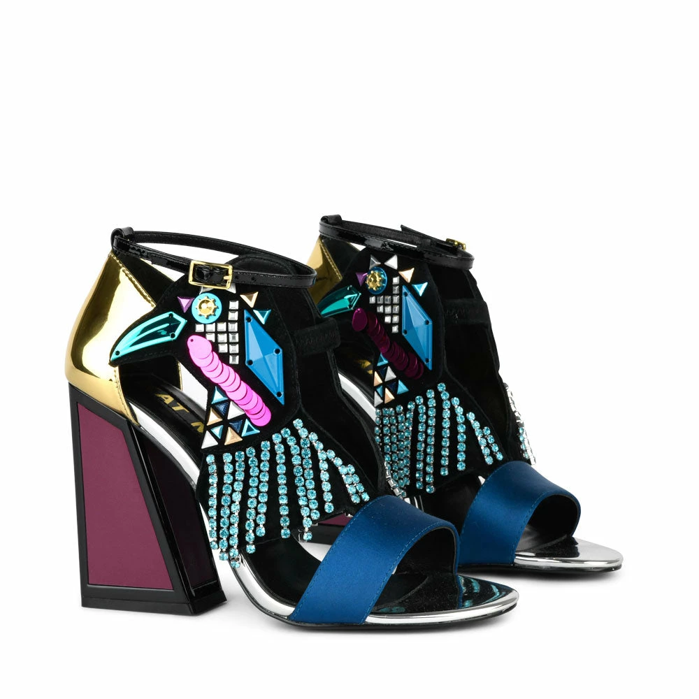 Stuck for what to wear? You might want to simply abandon all clothes when you’re wearing this shoe. A beaded bird finished with frills, pom-pom detailing and satin upper, the Aya is the life of the party and probably the one still there at 2 am partaking in yet another attempt at Samba.