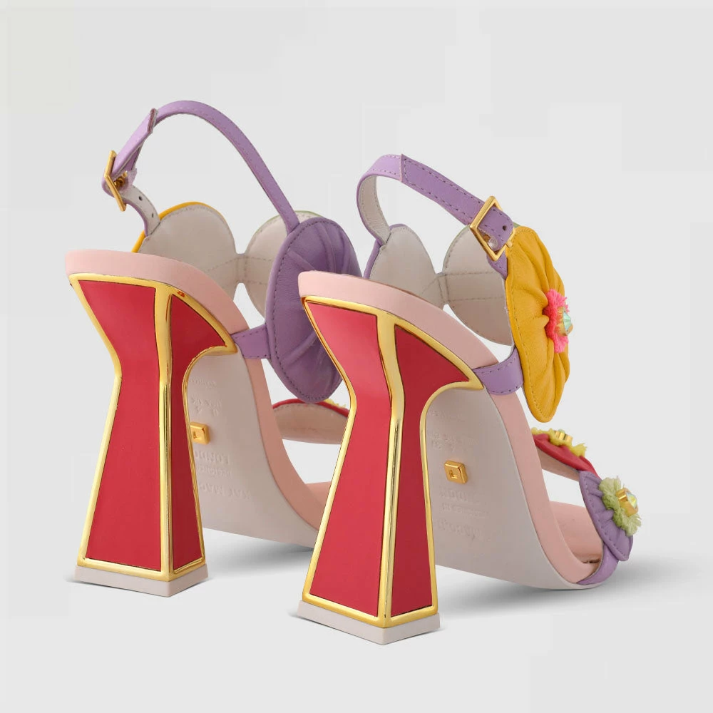 Make high summer yours with the Corran ultra-high heel. Crafted from bright-hued leather, this pair features floral-inspired detailing across both straps, with our signature flared heel for added flair.