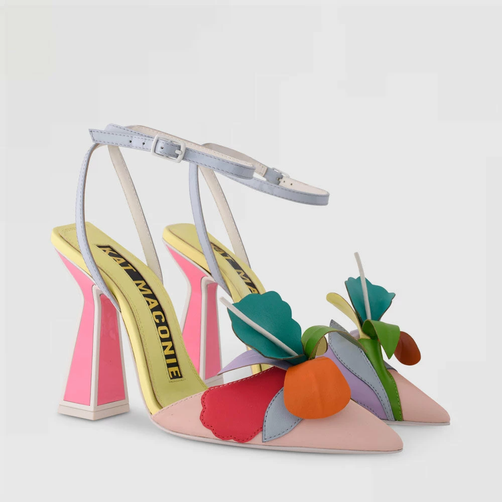 Designed for holiday season antics, this Rafi heel has 3D petals at the toe crafted from multibrights leather. With a pointed toe and high heel, this style is already throwing your parties for you.