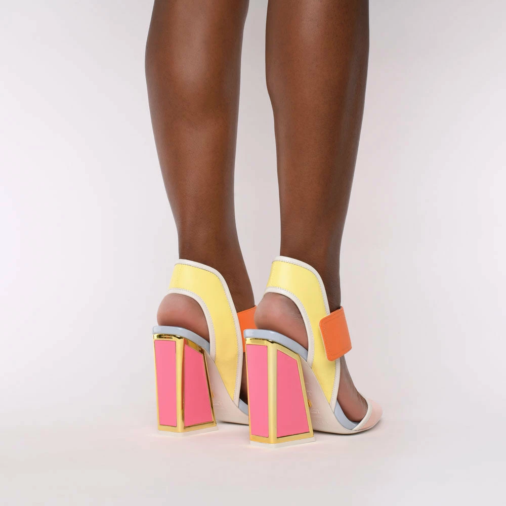 Dull is out and the Izzy is in. Feel polished in these pointed-toe courts but stand out with orange, pastel blue and yellow hues and a chunky velcro strap. Shoes that take you from meetings to cocktails, with the signature Kat Maconie heel, these are not the kind to keep stored under your desk at work.