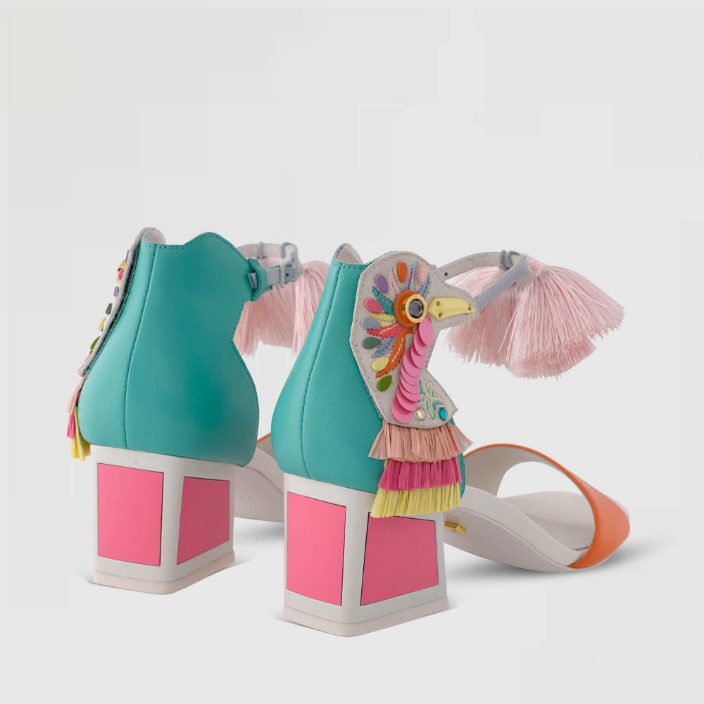 Short of actually booking your flights for you, these shoes inject a dose of the exotic into your shoe collection – and practically whisk you to the Bahamas with one look. An embellished bird at the back is offset with frills and a tassel at the ankle, with a smooth leather upper and signature block heel.