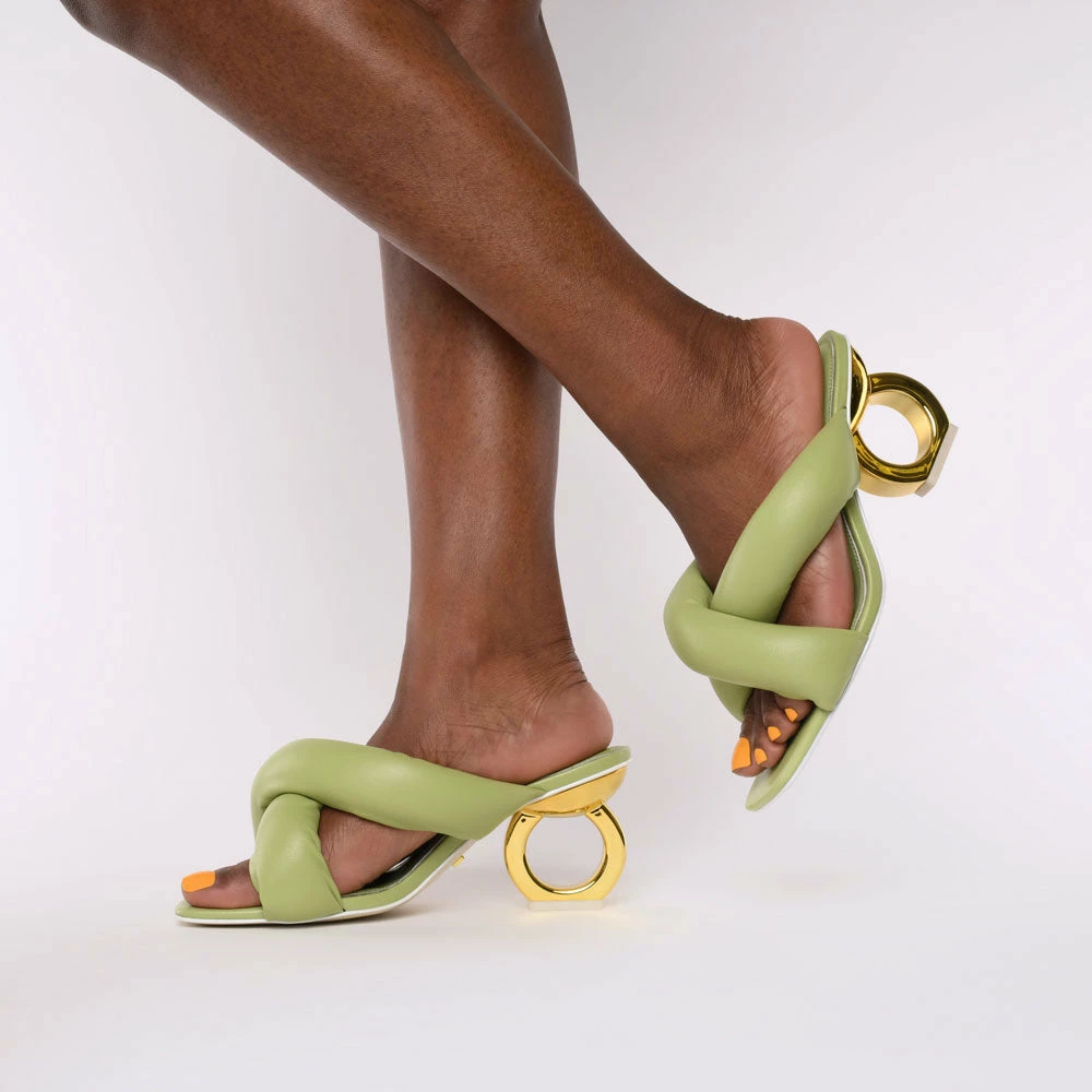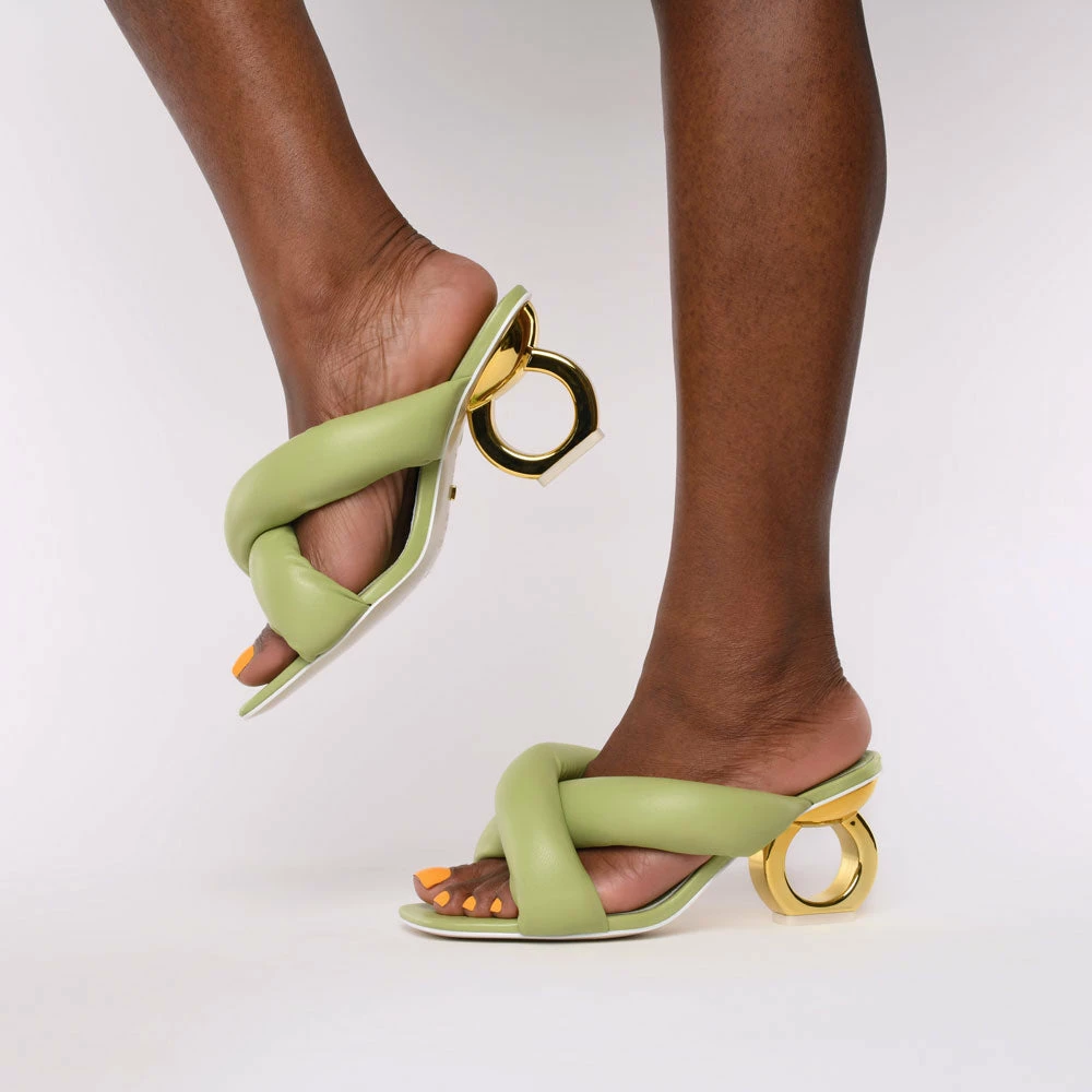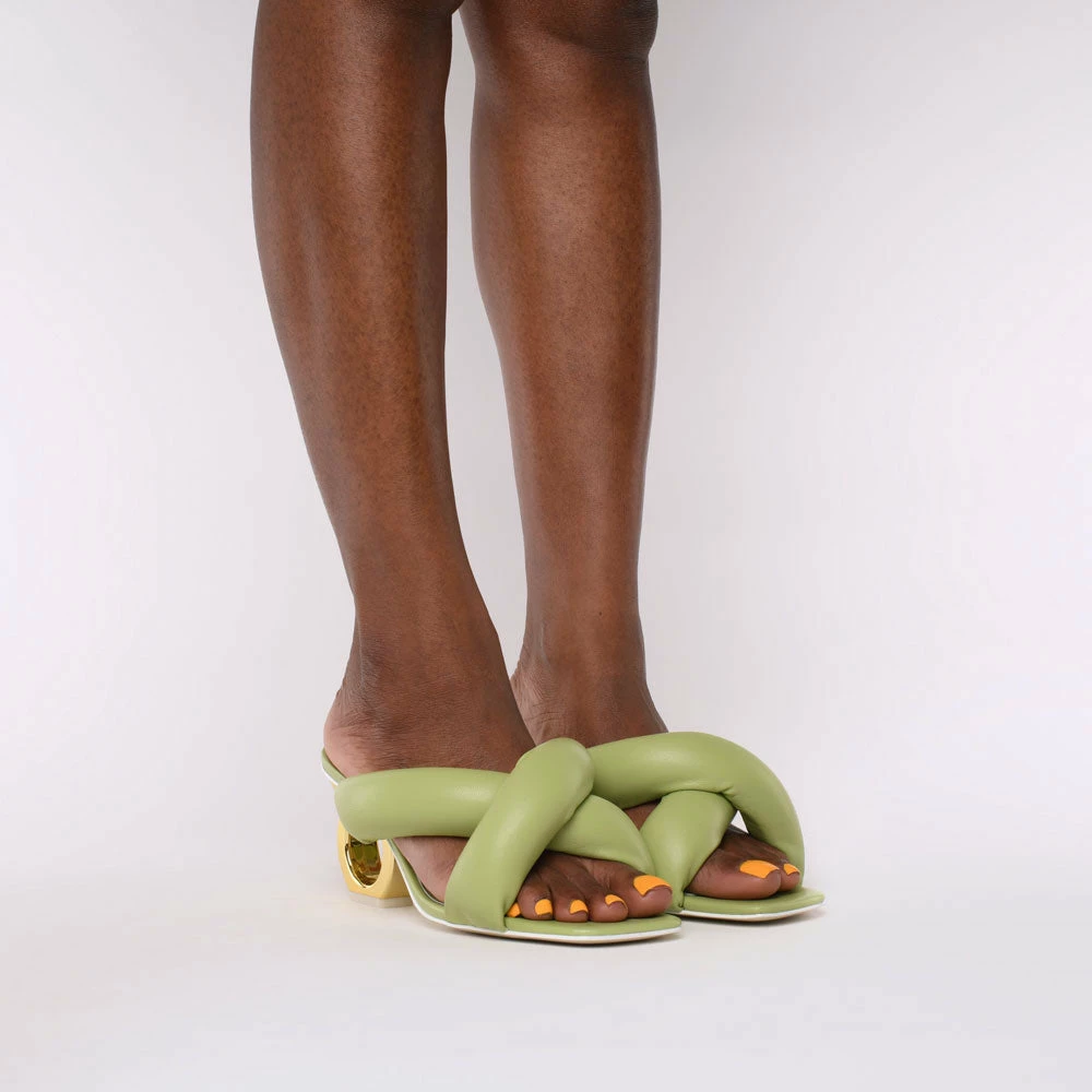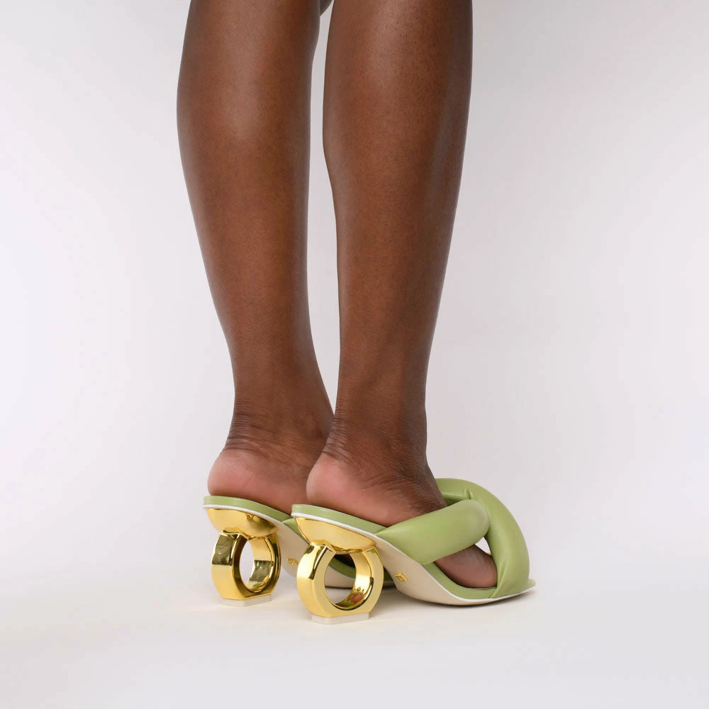 Everyday pleasures, elevated. The Itzel is crafted from ultra-soft leather with marshmallow-like detailing adding a plushness to our signature single-chain heel.
