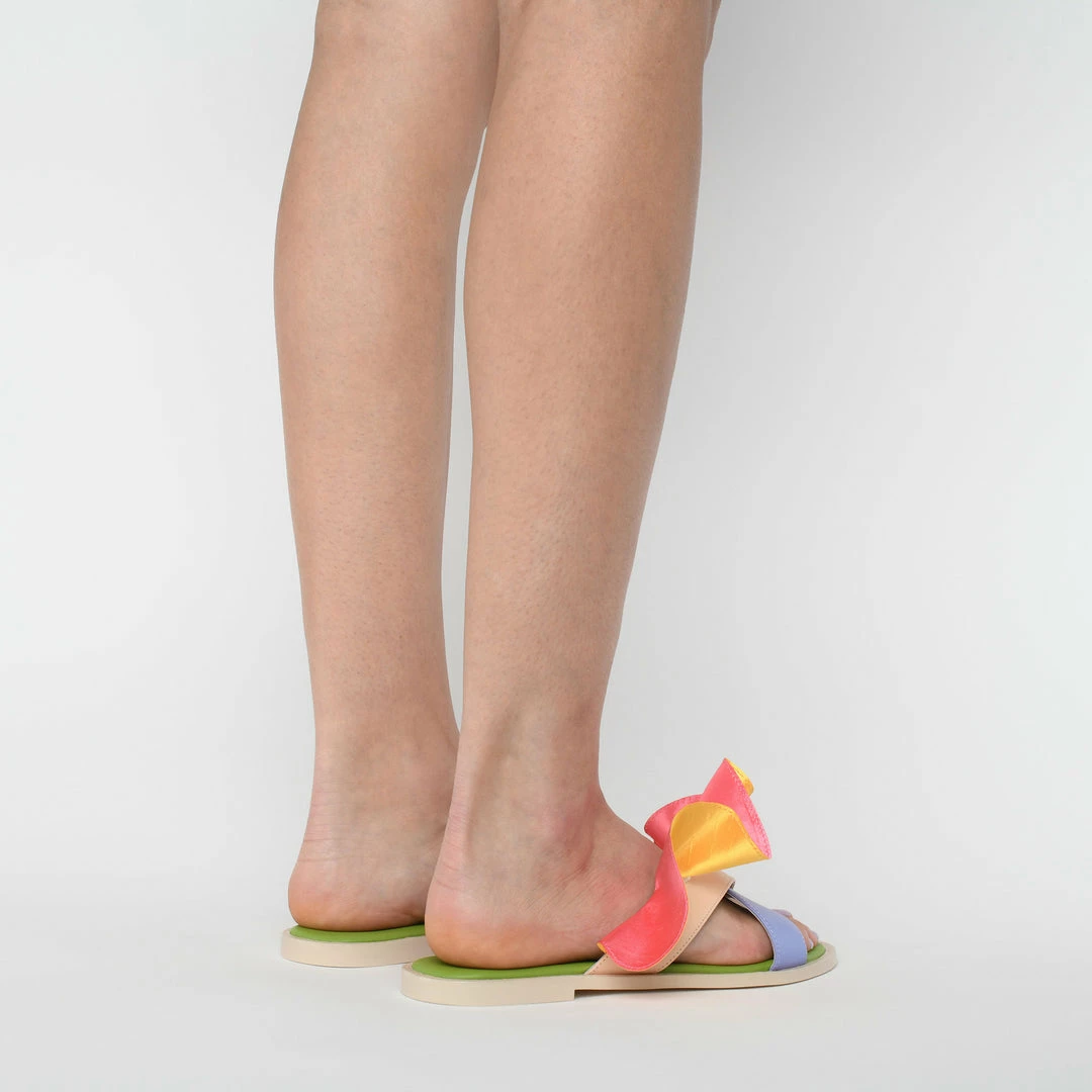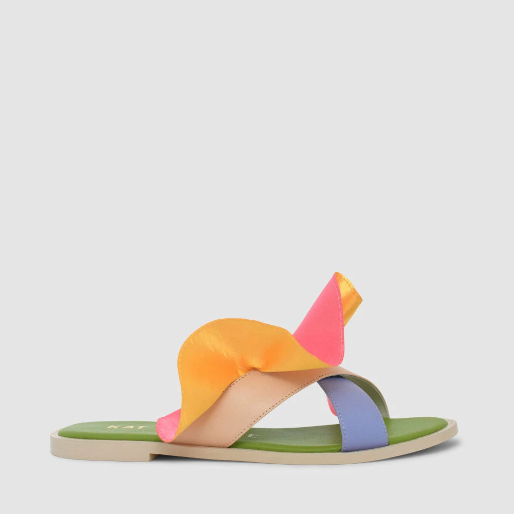 Who said flats don’t have flair? The Fran flat sandals make the everyday stylish, crafted from pastel multi-coloured leather with constrasting ruffle to the front.