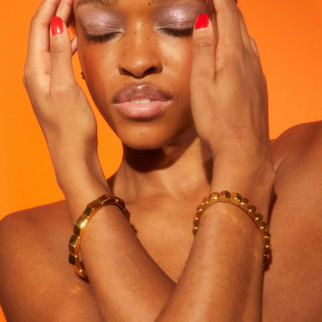 Kat Maconie’s signature playfulness, now in more ways to wear. Look to this 18ct gold-plated elasticated bead bracelet as a small nod to childhood dressing, but with a grown-up polished edge. With anti-tarnish properties and Punk-inspired prism studs that celebrate our London roots, this is the ultimate throw-on-and-go piece.