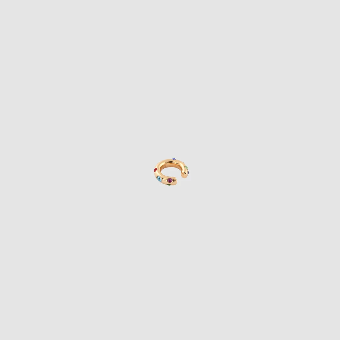 Kat Maconie’s signature playfulness, now in more ways to wear. No piercings, no problem – this 18ct gold-plated single ear cuff has a chunky design, set with multi-coloured crystals for added detail. An additional layer of anti-tarnish means you can slip this baby on and add some instant polish to your outfit, again and again.Â