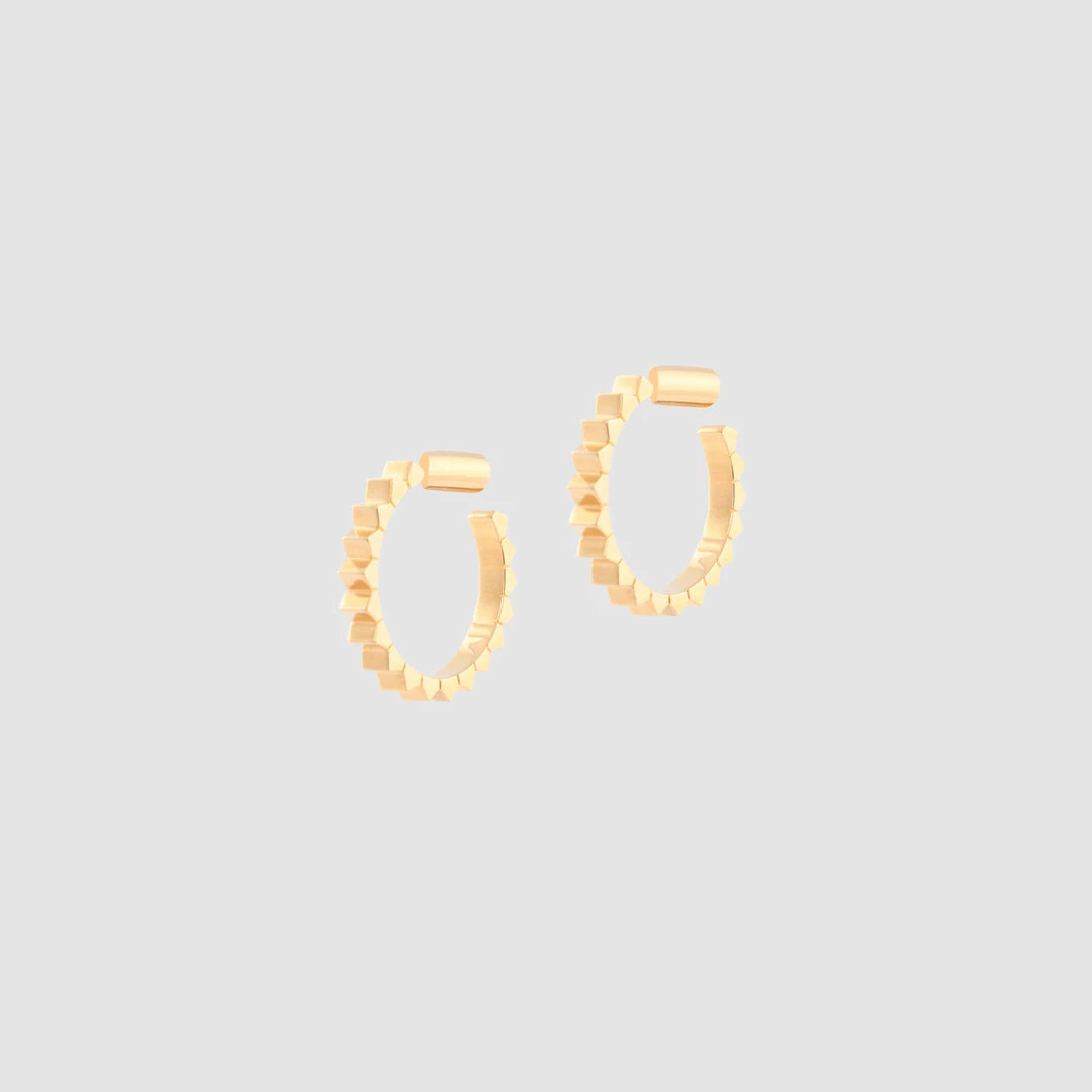 Kat Maconie’s signature playfulness, now in more ways to wear. Style up an everyday tee with these 18ct gold-plated hoop earrings, made with Punk-inspired prism studs that celebrate our London roots. With anti-tarnish to keep them looking polished and a push-to-close fastening that hugs the lobe, you’ll wonder what you wore before. Â Â