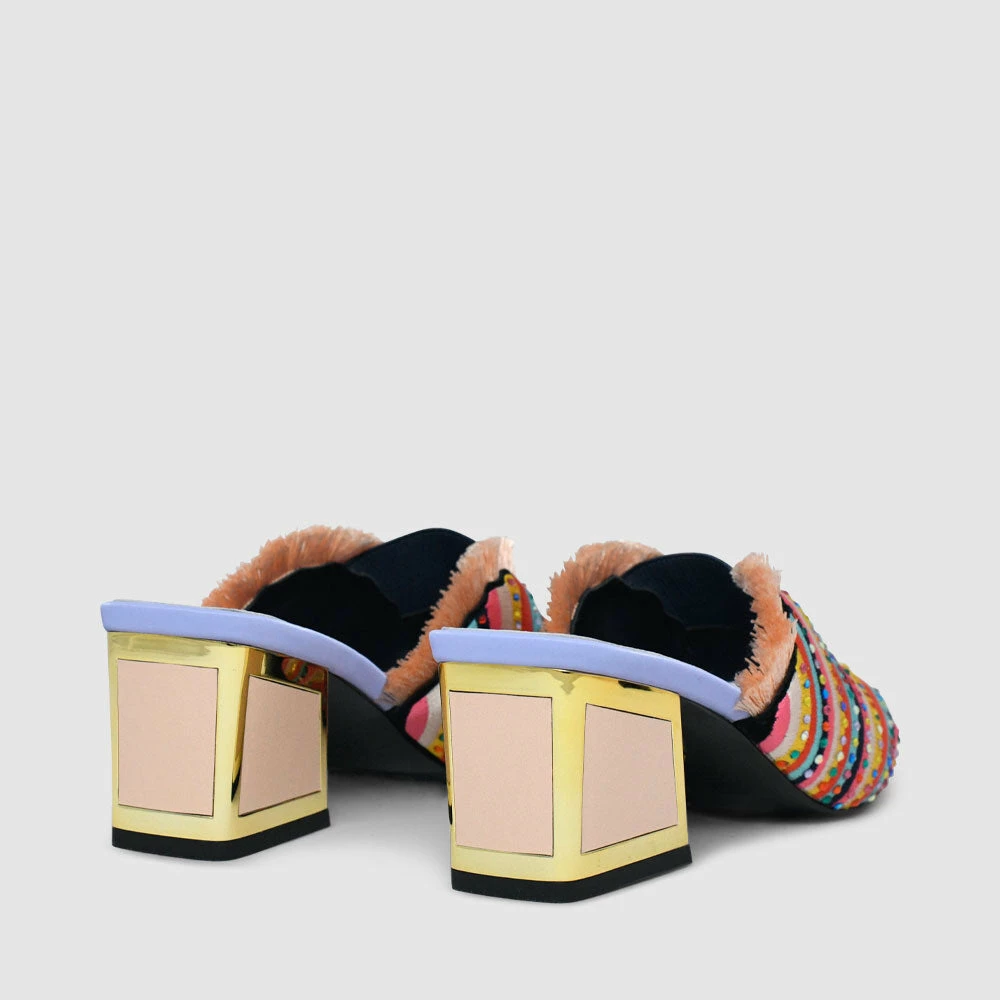 Meet Vira, a brightly-coloured mule that your summer can’t resist—now updated for PF’22. Slip on these purple leather heels, complete with our signature framed heel and Carnival-inspired crystal detailing to the toe.