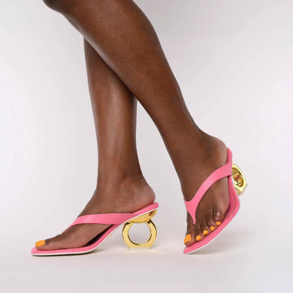 Our signature chain heel, updated. The Yana pairs a sandal design with gold-toned hardware and toe post, crafted in ultra-smooth pink leather for all-day comfort. Pack them first and put them away last.
