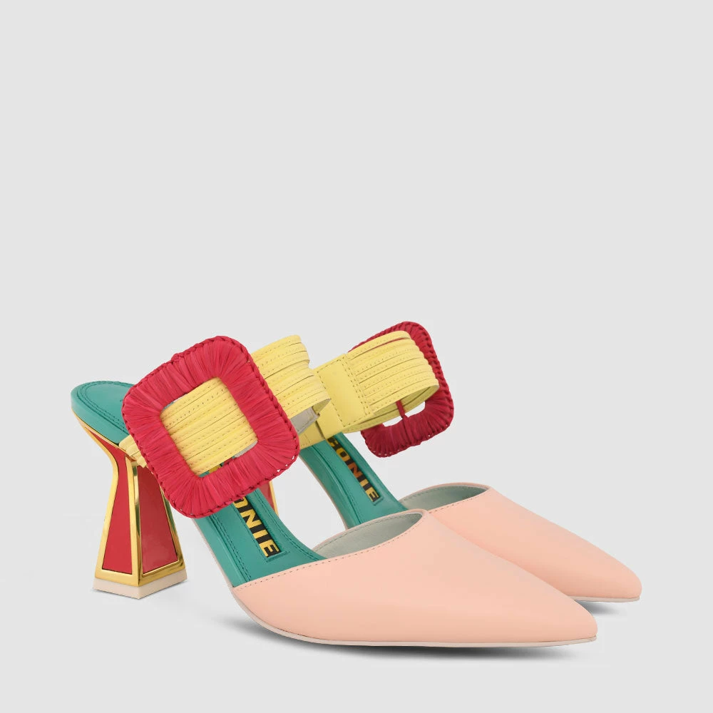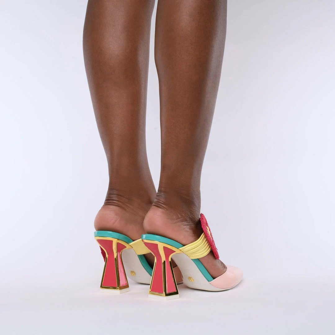 What spells out summer more than raffia? The Zestra heel is new for SS’22, with raffia-detailed oversized buckle, bright leather upper and our signature slanted heel. Now to make some plans.